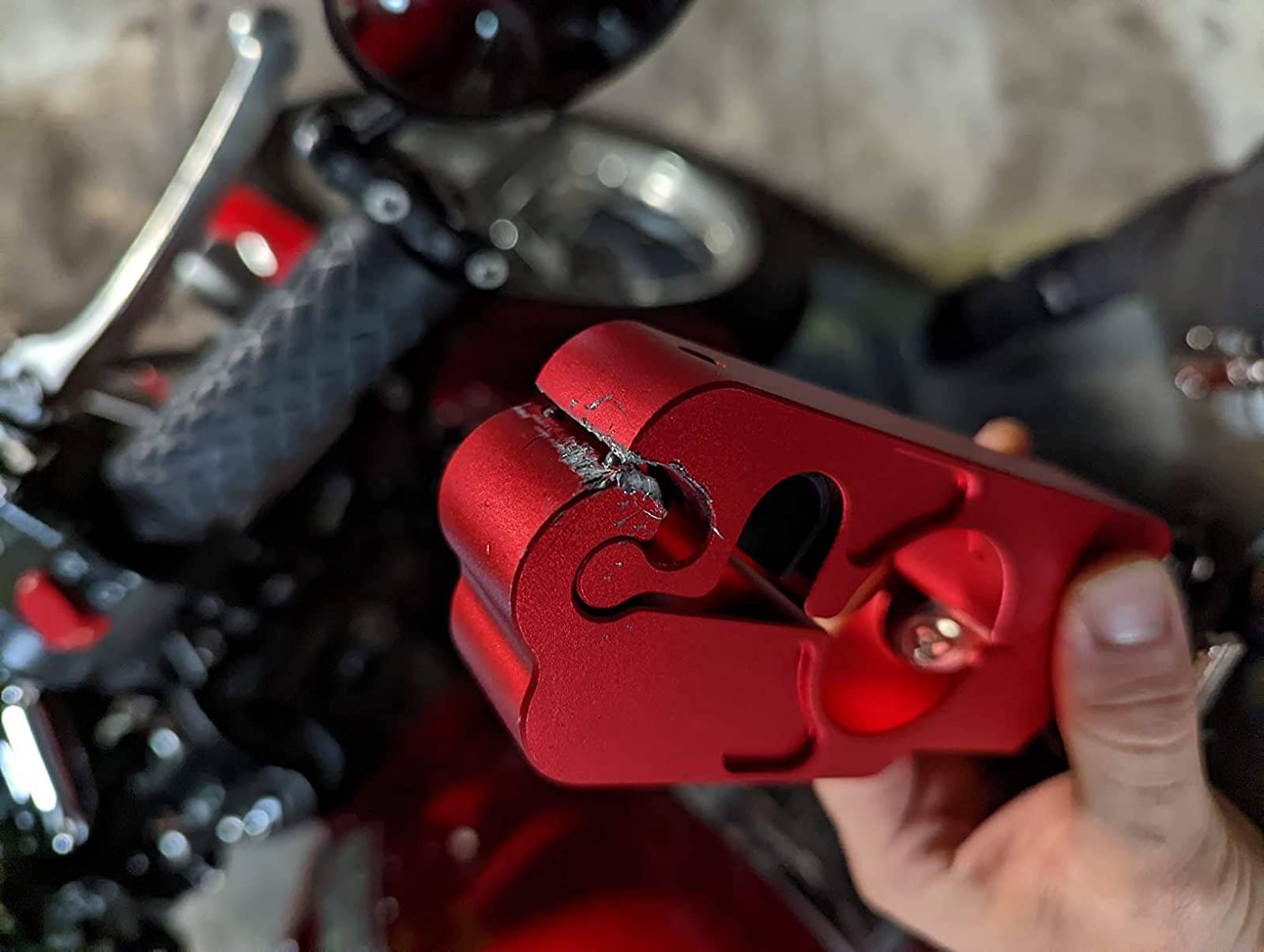 This griplock has a fantastic polish, and it goes really well with my red Yamaha FZ07 bike. The setup and operation are both simple and uncomplicated. The cutouts in the lock are designed to fit flawlessly over the handlebar and the lever. You can actually apply it and lock it with just one hand when you've gotten some practice. This may come in helpful if you need to keep your other hand free to hold your equipment. In comparison to other locks of a similar kind, this one stands out due to the fact that it comes with a lever sleeve (which protects your levers from becoming scratched while you use the lock), rubber adapter pieces (which create a more secure fit), and an additional key.